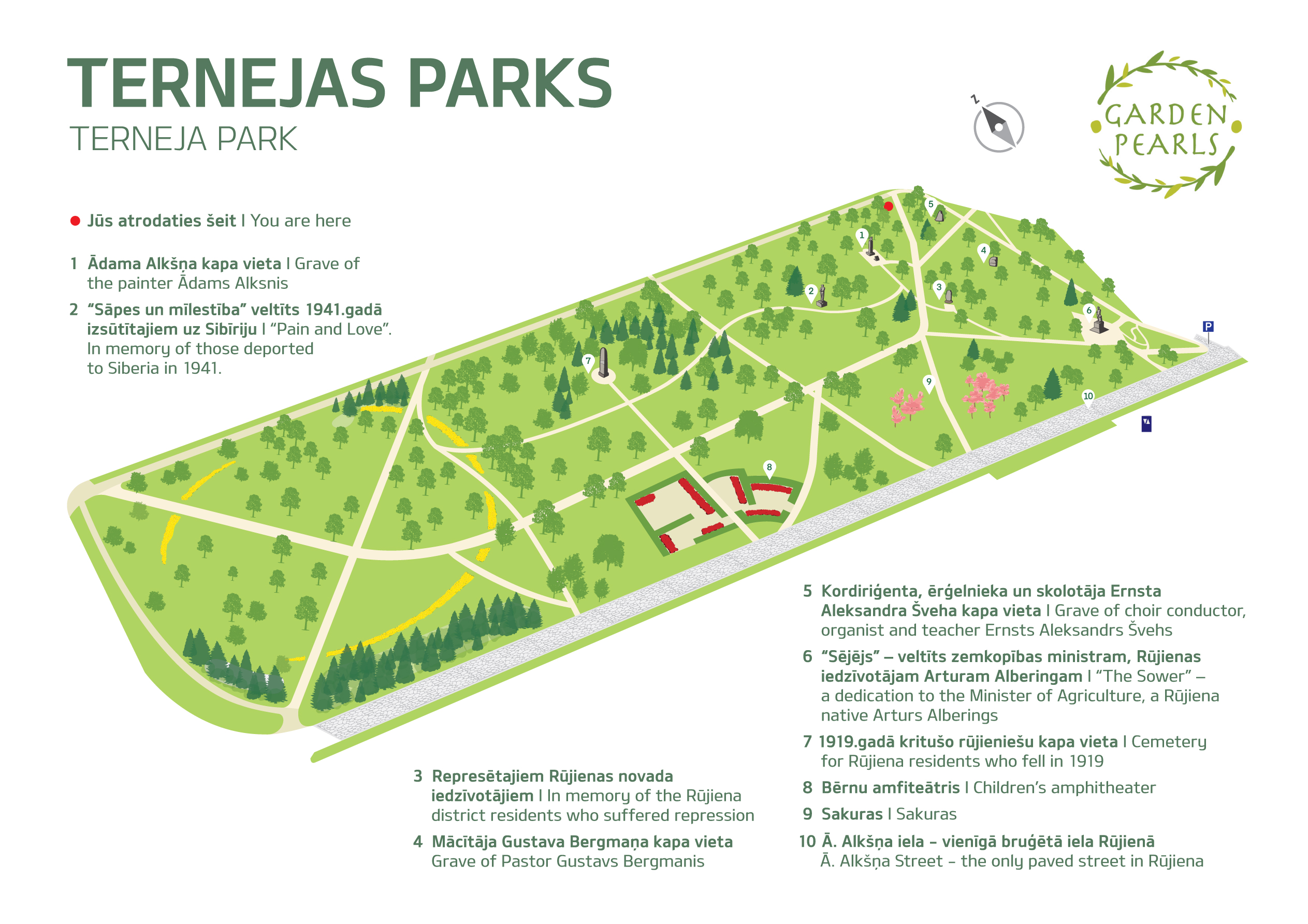 Terneja Park in the centre of Rūjiena is proud of its arboreal diversity and its exotic jewel – a sakura garden.